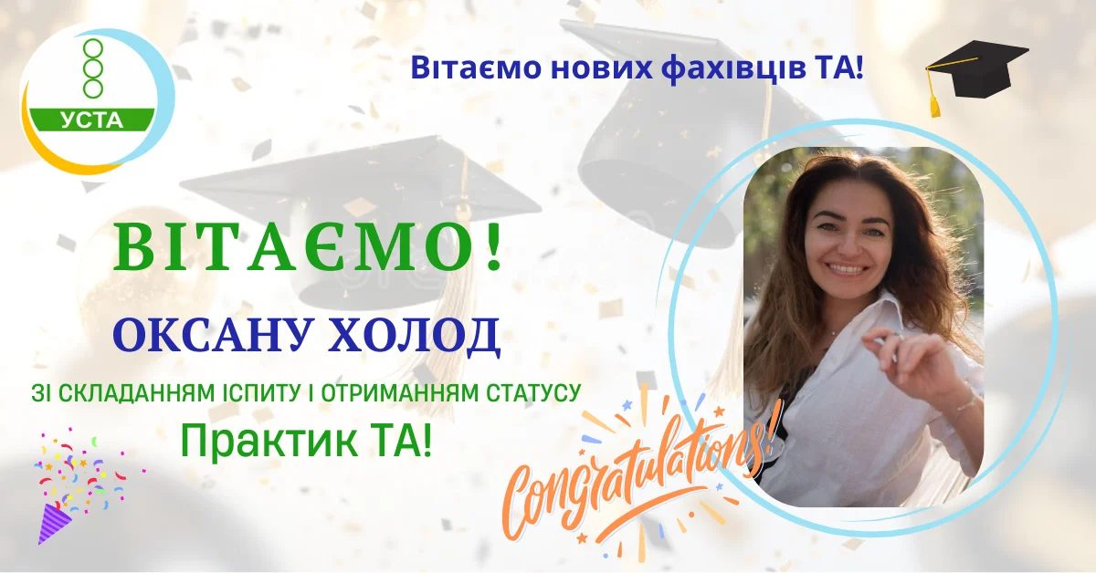 Також вітаємо супервізора Ганну Головань (TSTA-P-EATA), яка супроводжувала Ангеліну під час підготовки до екзамену.