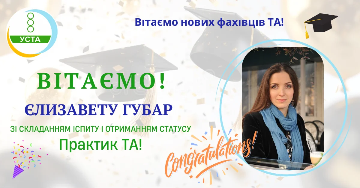 Дорога Ангеліна, від щирого серця вітаємо тебе з успішним складанням міжнародного іспиту та отриманням нового статусу СТА-Р (ЕАТА)! Бажаємо тобі натхнення, успіху та нових досягнень на твоєму професійному шляху!